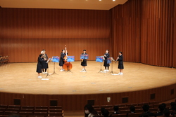 管楽器六重奏は、さまざまな楽器の音色が融合し、非常に魅力的な演奏ができる編成です。「彩りの風景~日本の童謡メドレー~」という曲を演奏しました。
