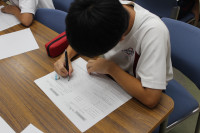 受信力強化問題を年間6回、発信力強化問題を年間4回行います。今日は、はじめての発信力強化問題を行いましたが、機器の不具合等もあり、少しとまどう場面もあったようです。次回からは、よりスムーズに行えると思います。2年生は、明日行います。